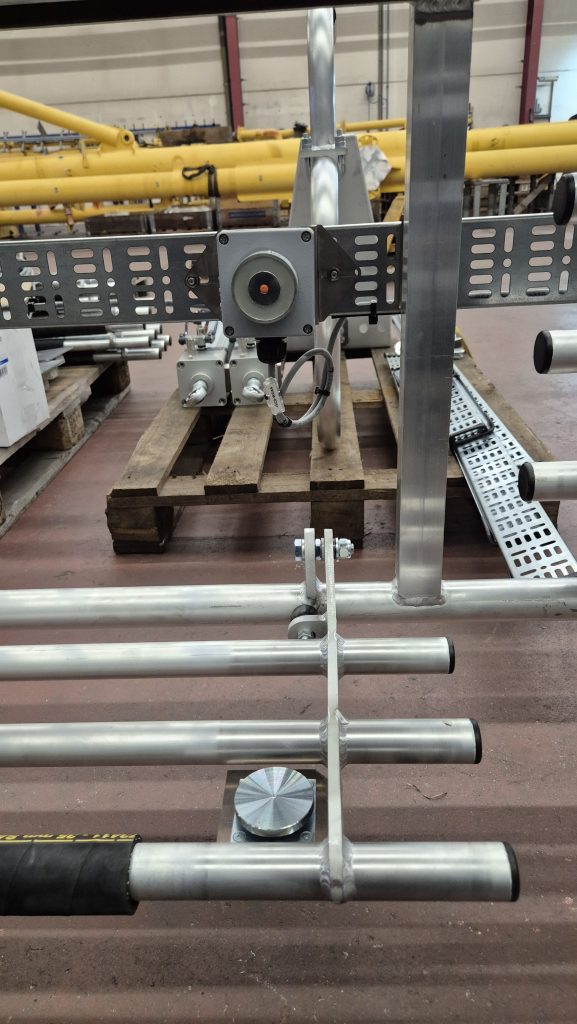 Nadat de werken op de vrachtwagen zijn afgerond zet de operator de veiligheidskooi weer in zijn rustpositie, een inductieve sensor detecteert dit, de magneten worden uitgeschakeld waarna de valhekjes automatisch altijd weer omlaag vallen.